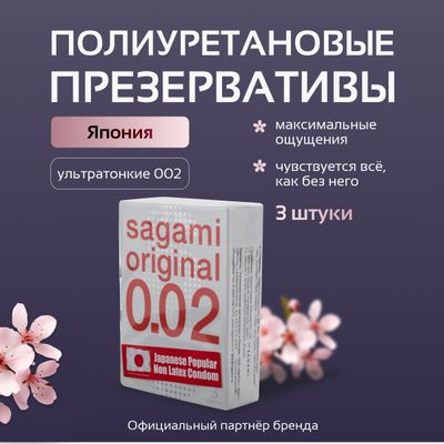 Sagami original 002, 3шт - тонкие и надежные презервативы! Толщина стенки 0.02mm - в три раза тоньше, чем у стандартных латексных презервативов. Прочность полиуретановых презервативов в 2 раза выше в тестах на растяжение и в 3 раза выше в тестах на объемное расширение. Их теплопроводность в 7 раз выше, чем у латекса. Тепло передается так, как если бы презерватива не было. Полиуретановые презервативы не содержат протеинов и, как следствие, нет специфического “латексного” или "резинового" запаха. Высокая плотность укладки молекул полиуретана делает поверхность исключительно гладкой и способствует натуральности ощущений. Высокая прозрачность способствует полноте визуальных ощущений. Современные японские технологии – выбор человека, ценящего надежность и качество.